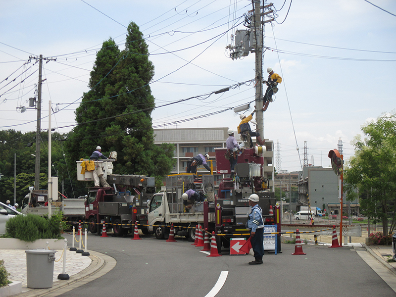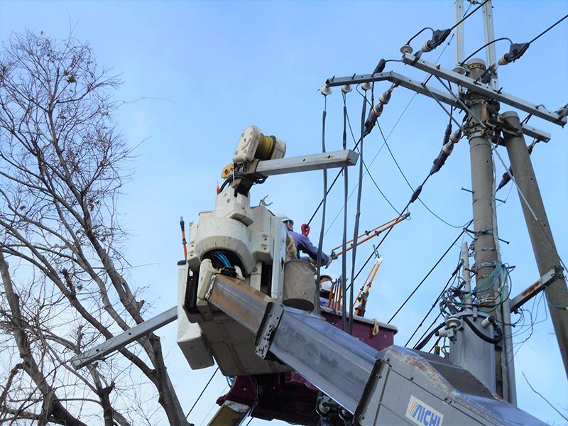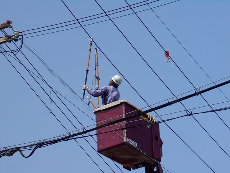 当社は長年の技術とノウハウを生かし地元の配電事業を通じて電力の安定供給に貢献しております。主に電力会社の架空配電工事で電線の張替、機器の取替、電柱の建替工事に努めています。